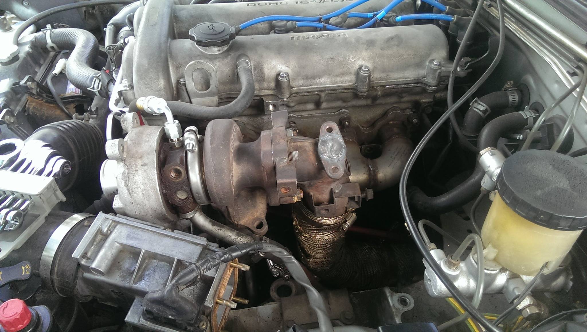 Grabbed some stainless tees and elbows and welded together some sort of godawful exhaust manifold for this Mitsubishi 3000GT VR-4 turbo and slapped it in my '91 Miata. Meh.