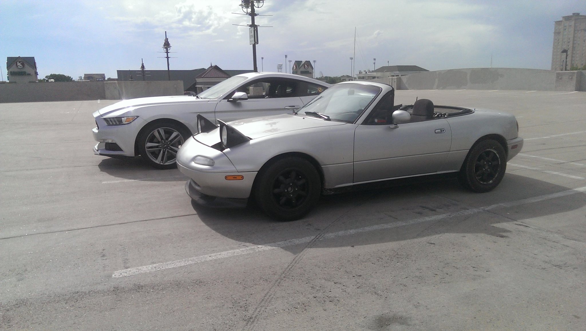 The car at this point. Shitty stickerbomb vinyl wrap on the passenger door due to it being white instead of silver. Orange wheels because pumpkins. Fender mirrors because I swear it's a Nissan Z.