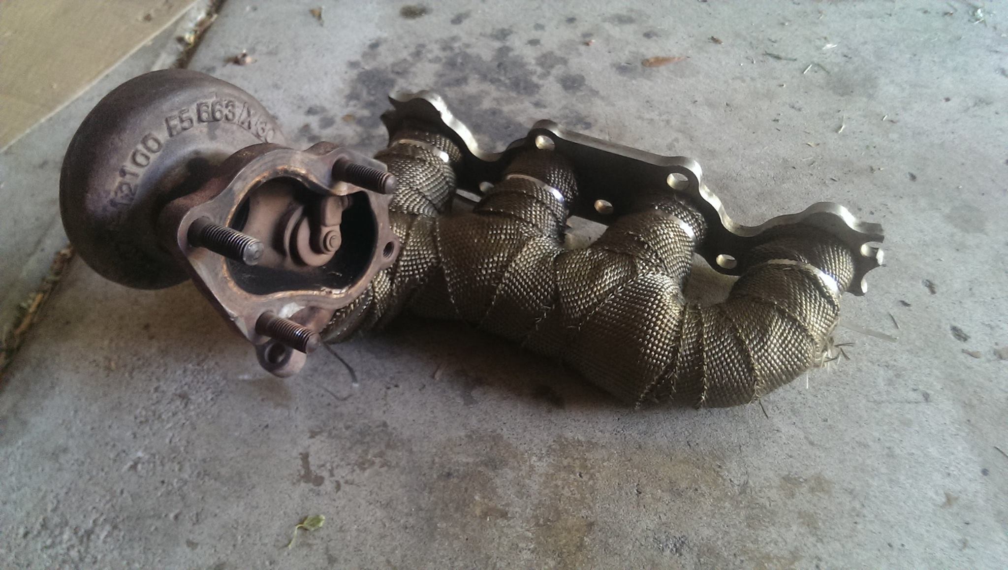 Wrapped with some wrap I got from Amazon. Not bad. Hides the godawful welds. The process of welding warped the **** out of the flange and I can't fit one of the nuts back onto the exhaust stud so the car has a really annoying ticking exhaust leak until it reaches operating temperature and the metal expands slightly.