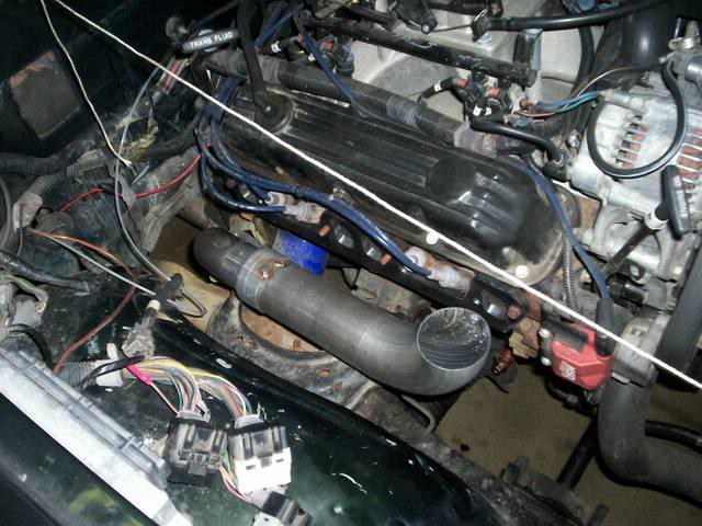 Yeah, Im not a big fan of the pipes sticking out of the bottom. But its the only way I could route them. I didnt want to cut through the radiator support, Its not some thin sheet metal. And the area around that is the headlights. I could have put one horizantly mounted like the procharger kits. But that limits you to small sizes. And these cast pistons hate detonation, so I need that 15psi as cool as can be.