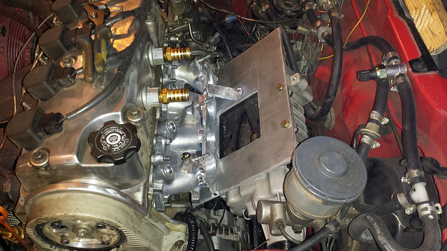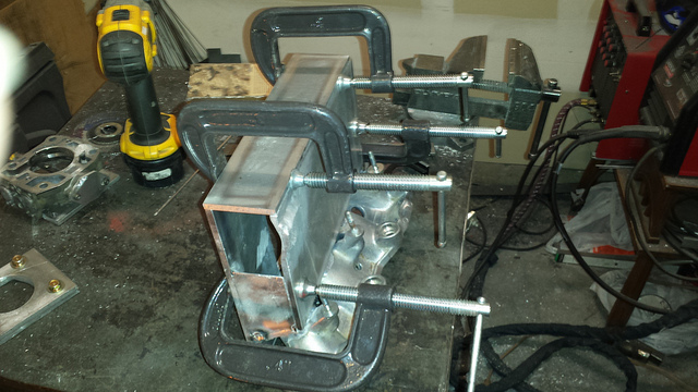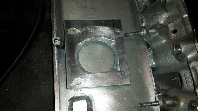 Tack welded to the supercharger plate for a test fit.