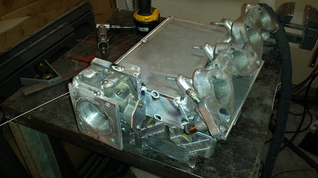 This is going on a d16z6. The supercharger is an m62 setup for counter clockwise rotation. The turbo inlet is the bypass valve pictured. I didn't have much choice in the design due to the engine bay constraints. It is a box welded to a stock manifold and the entry to the runners is at an angle. Is there anything I could or should do to it before I finish welding it up?