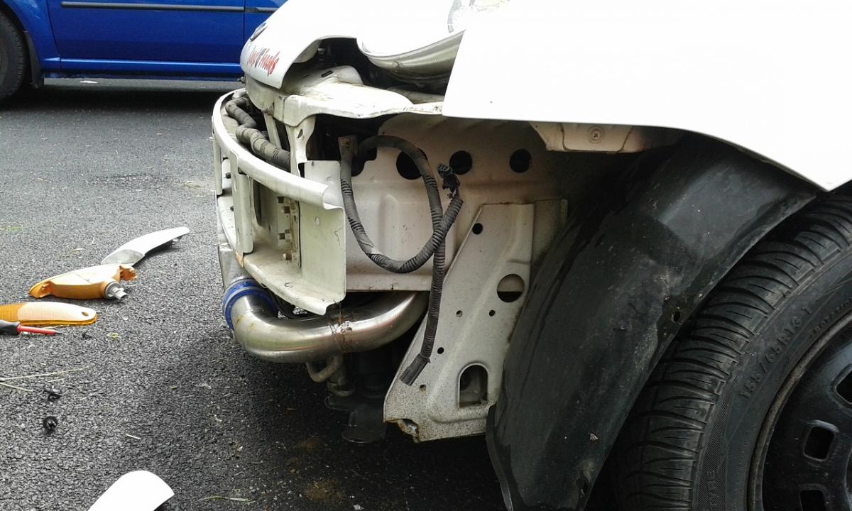 The obvious position for the air filter would be inside the bumper and it will be done by welding the piece of pipe on which the filter stands directly to the car via some kind of fabricated mount. After that a hole will be drilled to accommodate piping towards the turbo.