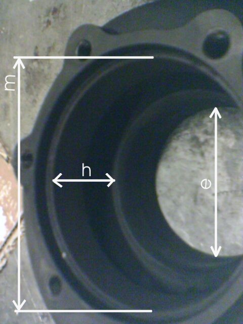 The bigger hole has different diameters, too. The curious is, the T3 housing (for a stage 5 wheel) will allready fit over the major side of the turbine wheel. Do i need to modify this side, too? Or can i leave it? (in the picture marked as "m" for major) How much clearance need to be there?