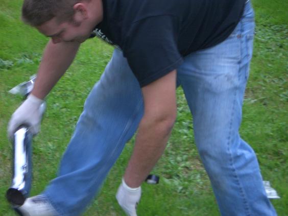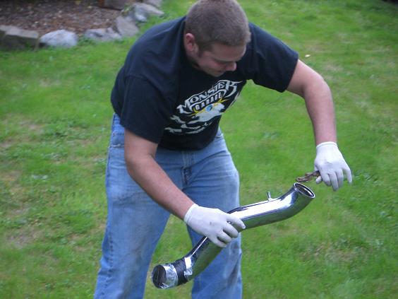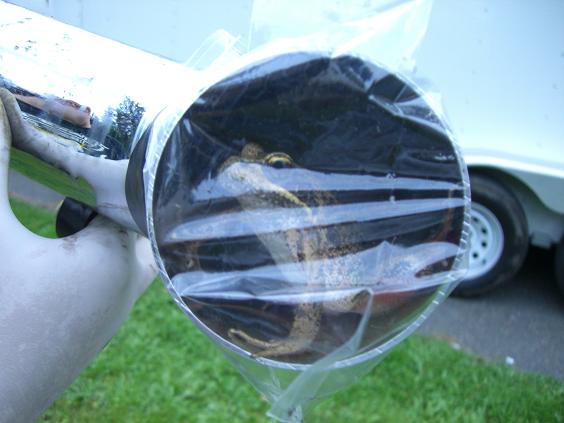 Beau asks.. do you have a jar or anything I can catch him in? I'm like nope, so we found a spare intake in the garage and put some sandwich bags on the end.
